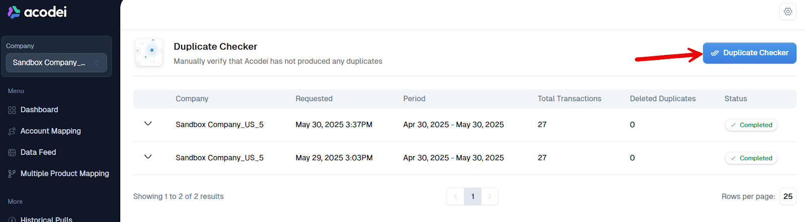 Though uncommon, the QuickBooks API occasionally generates duplicates of sales receipts or other documents. While we've made extensive efforts to address this within our code, the chance of duplicates persists. To help you manage this issue, we've developed the Duplicate Checker that you can use to manage potential duplicates.